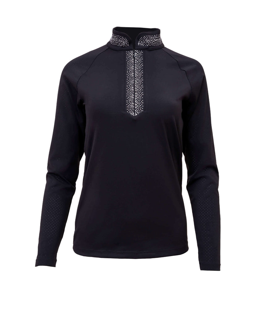 Enter the arena in the elegant black long-sleeved show shirt, Jódís, decorated with sparkling crystals – an absolute highlight for your grand entrance!