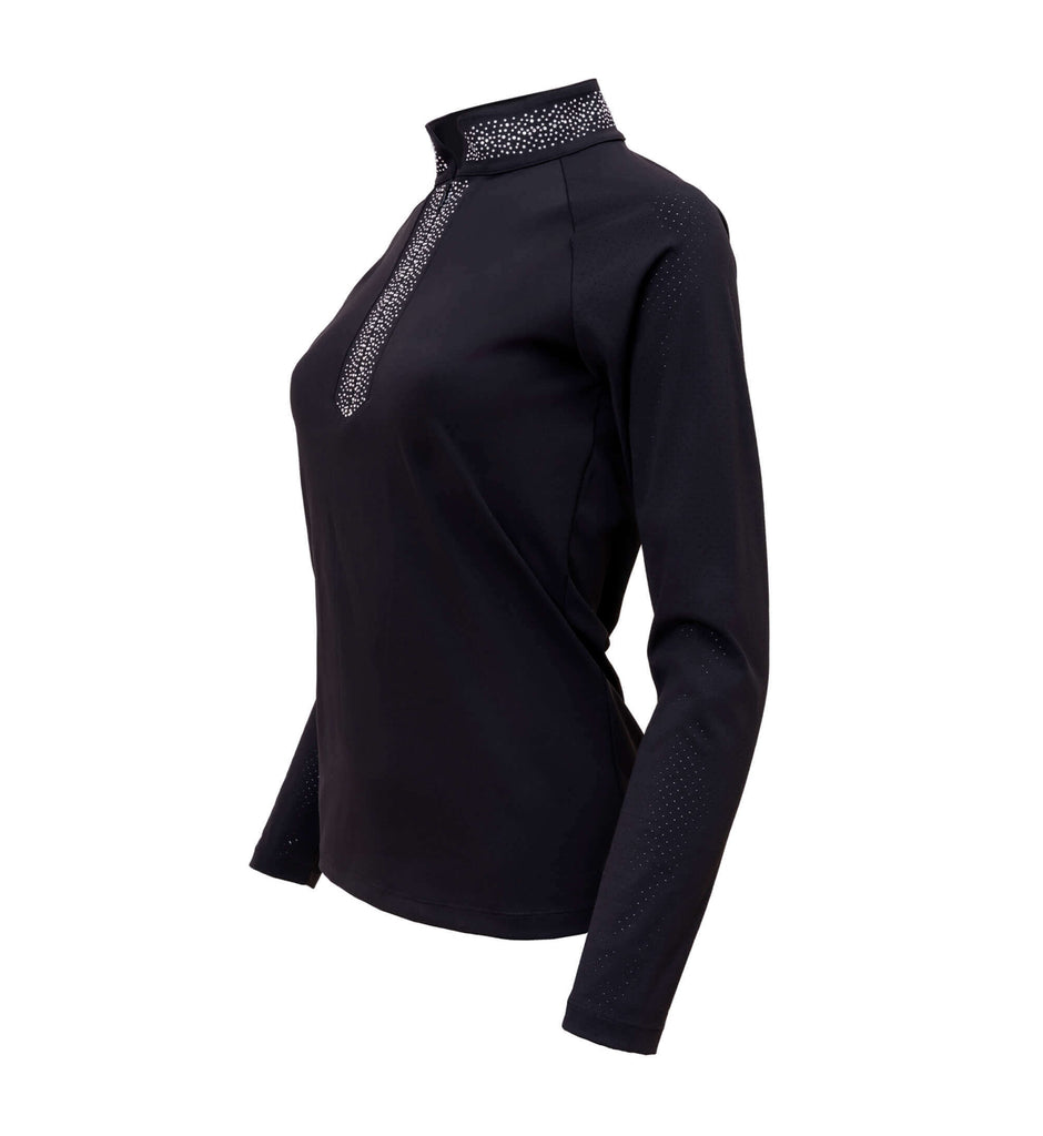 The sparkling crystals, artfully placed along the stand-up collar and zipper, add a subtle touch of glamour to the Jódís long-sleeved shirt, ensuring you'll shine in the spotlight. The optimal choice for a triumphant performance at the highest level!